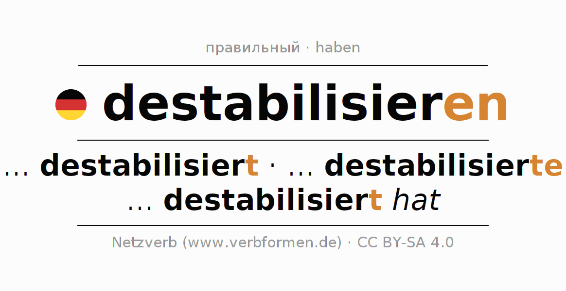 Этот глагол destabilisieren полностью спрягается во всех лицах и числах Императив Презенс.