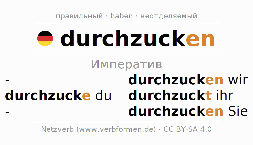 Этот глагол durchzucken полностью спрягается во всех лицах и числах Императив Презенс.