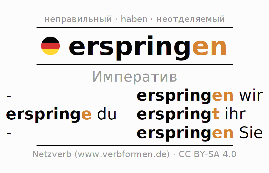 Этот глагол erspringen полностью спрягается во всех лицах и числах Императив Презенс.