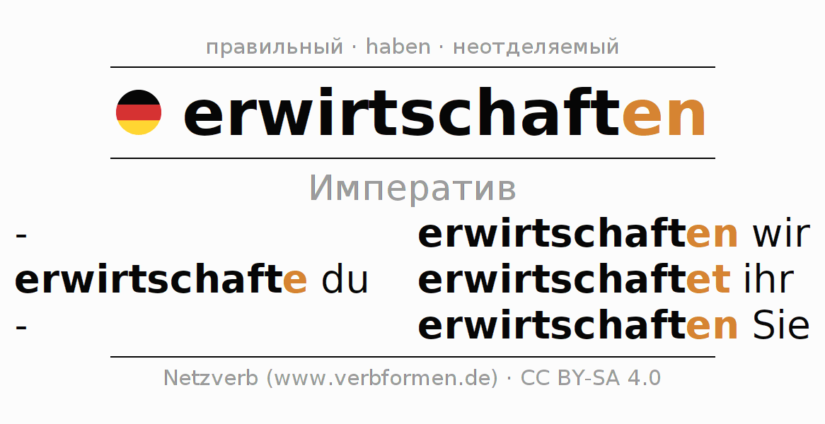 Этот глагол erwirtschaften полностью спрягается во всех лицах и числах Императив Презенс.