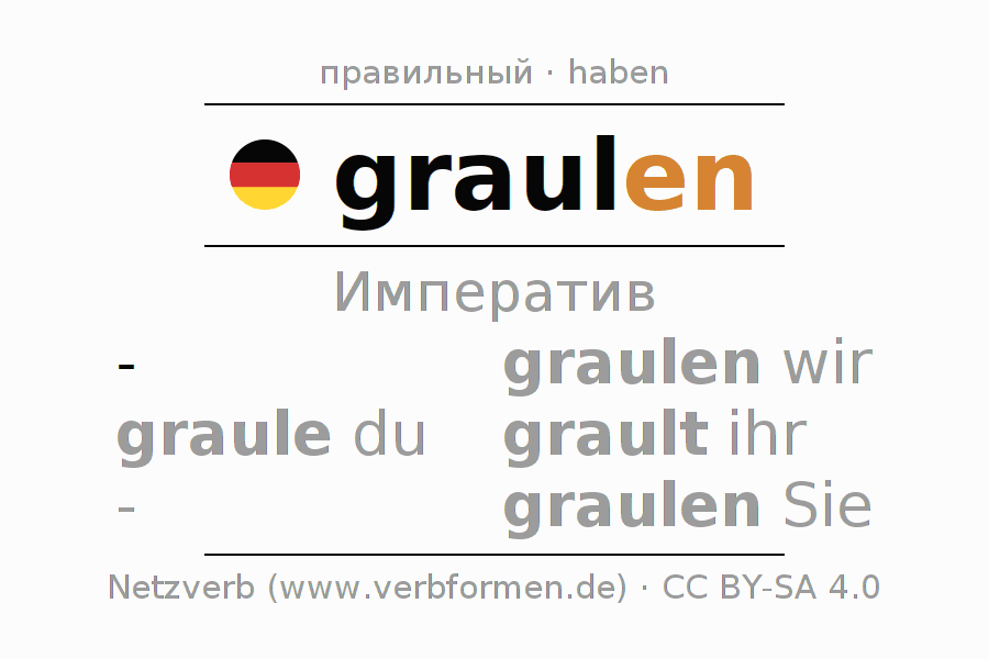 Этот глагол graulen полностью спрягается во всех лицах и числах Императив Презенс.