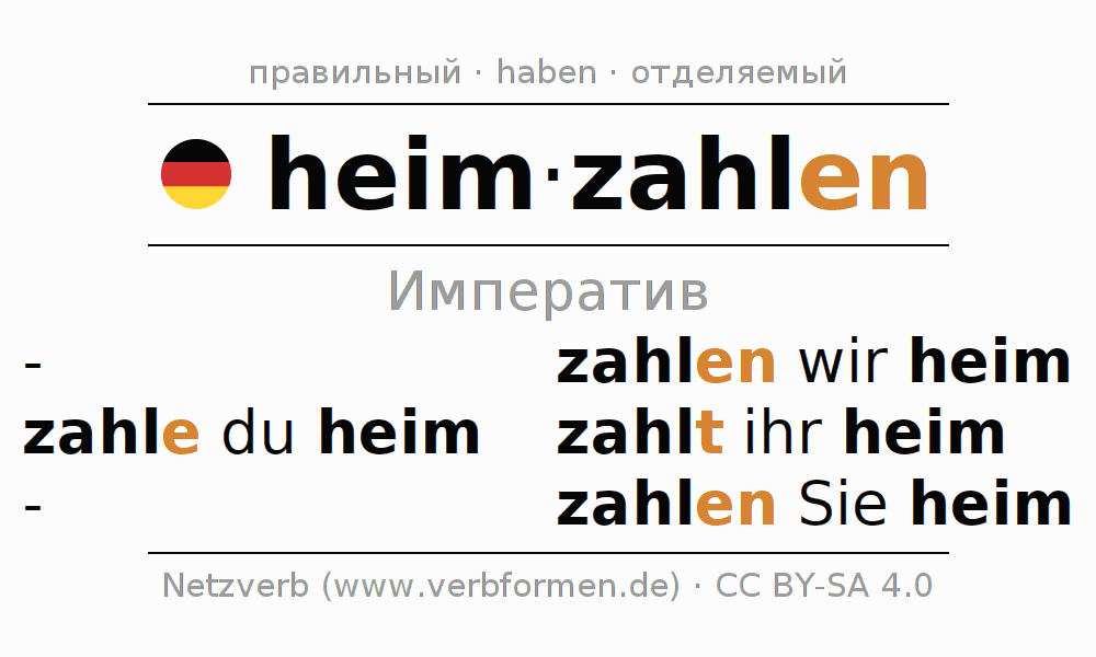 - zahle (du) heim (Второе лицоЕдинственное число)