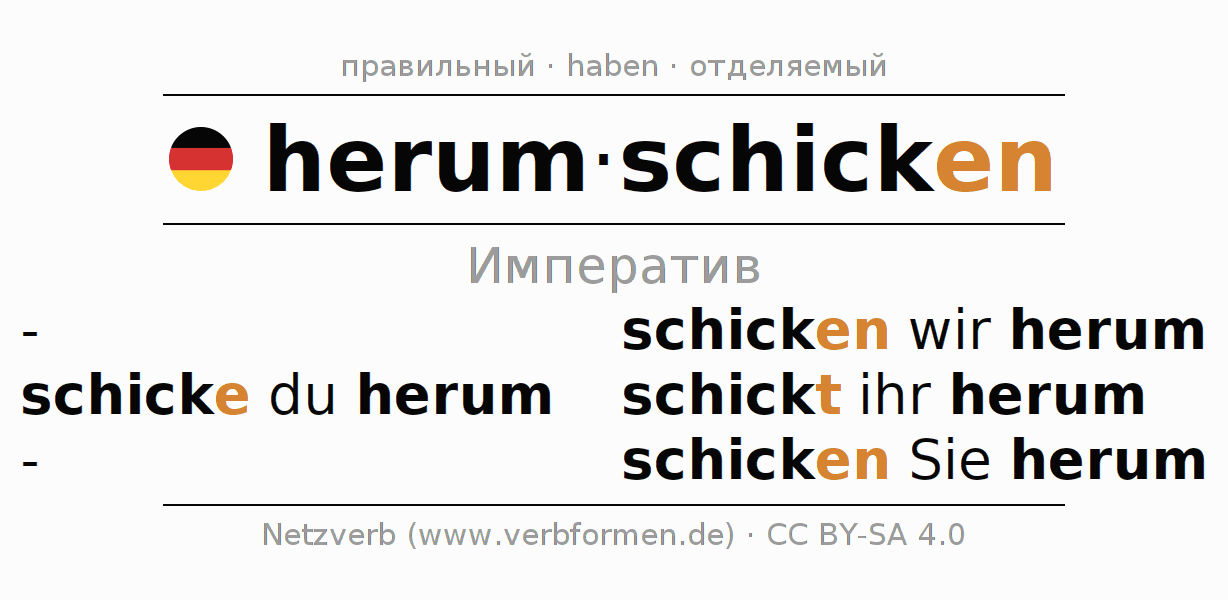 - Как спрягается herumschicken в Императив?