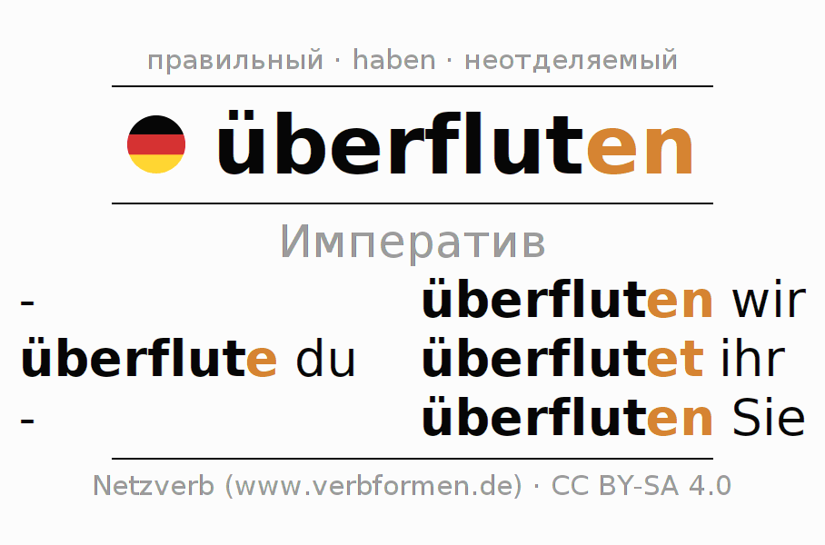 - Как спрягается überfluten в Императив?