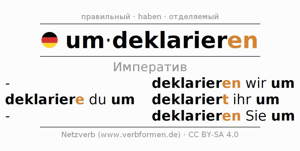 Этот глагол umdeklarieren полностью спрягается во всех лицах и числах Императив Презенс.