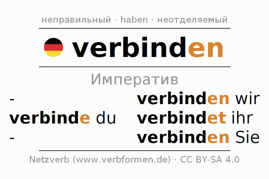 Этот глагол verbinden полностью спрягается во всех лицах и числах Императив Презенс.