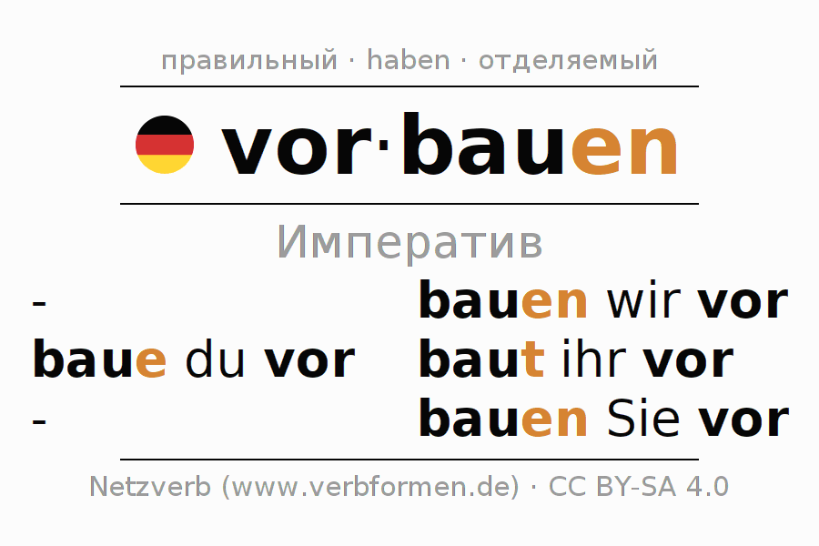 - Как спрягается vorbauen в Императив?