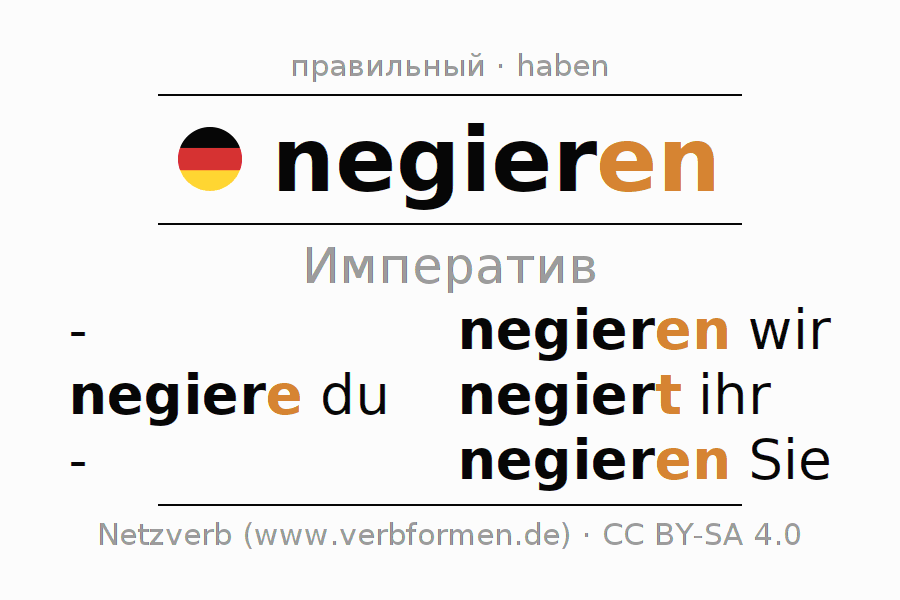 - Как спрягается negieren в Императив?