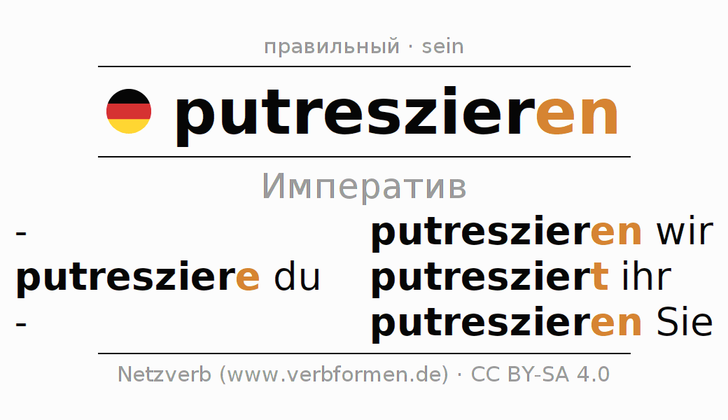 Этот глагол putreszieren полностью спрягается во всех лицах и числах Императив Презенс.