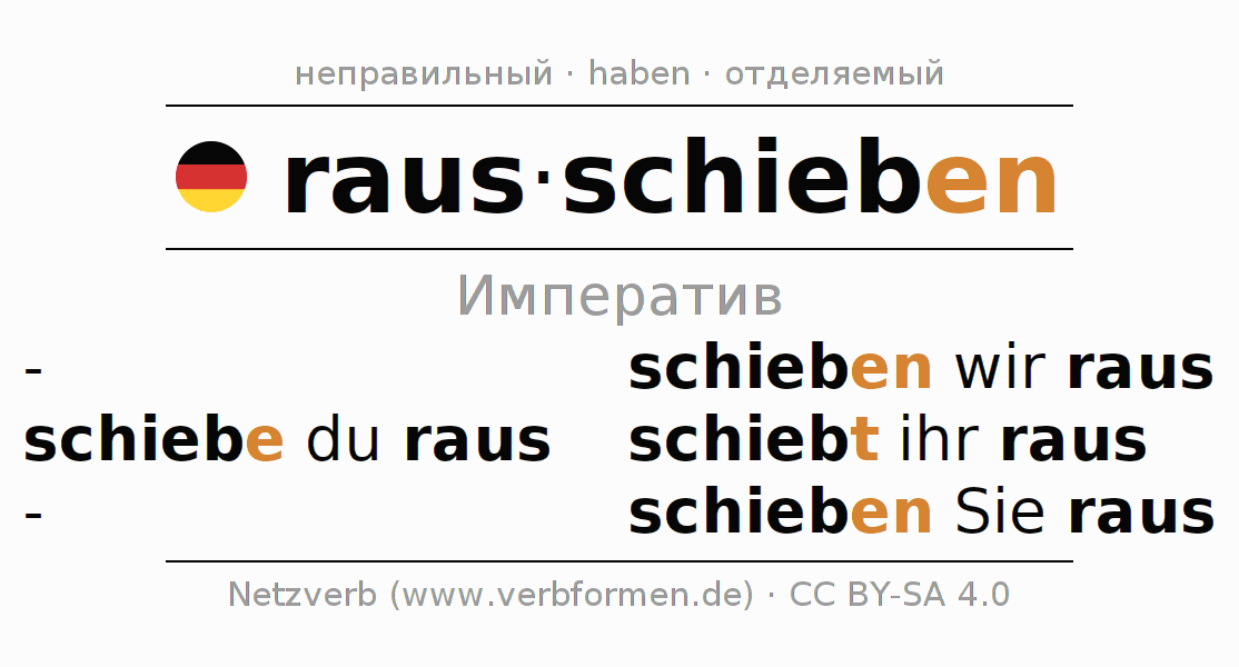 - schiebe (du) raus (Второе лицоЕдинственное число)