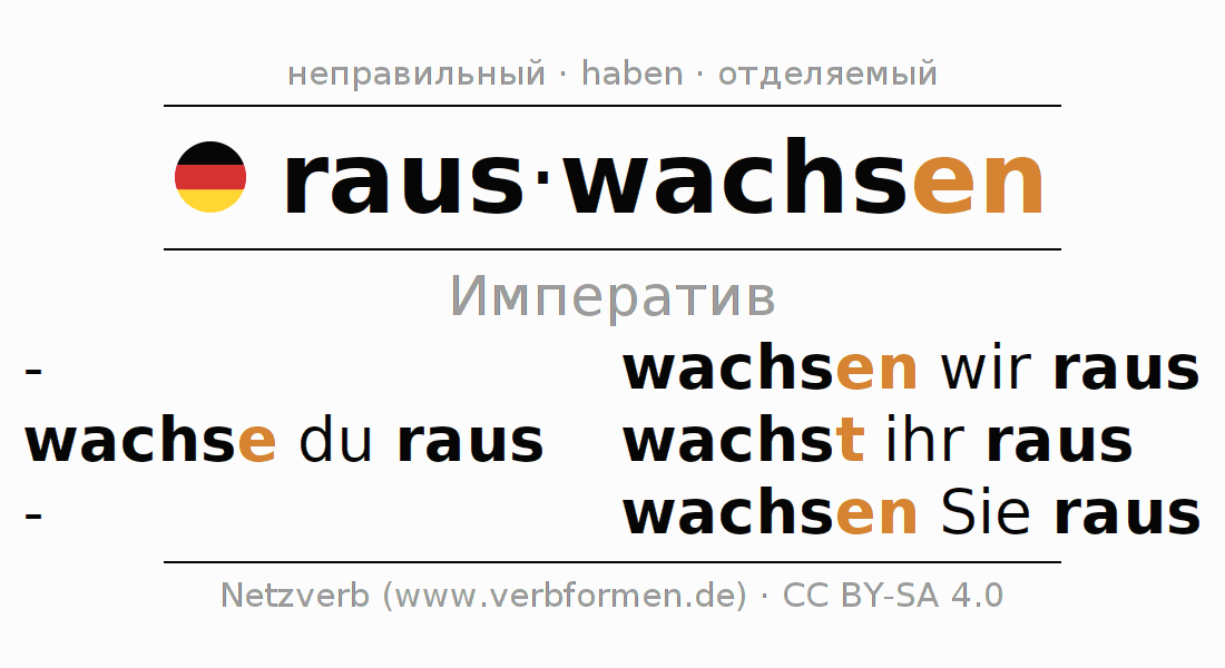 Этот глагол rauswachsen полностью спрягается во всех лицах и числах Императив Презенс.