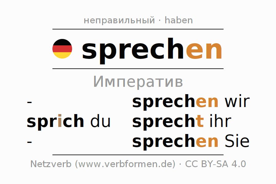 Повелительное наклонение образуется на базе глагольного основания sprech