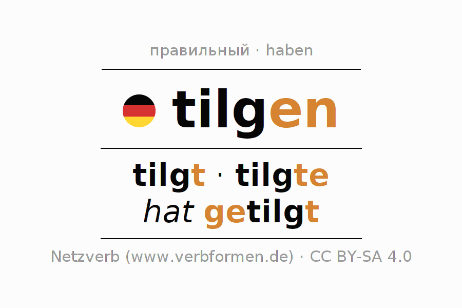 Формами спряжения tilgen (погашать, возвращать) в повелительном наклонении являются: tilge (du), tilgen wir, tilgt (ihr), tilgen Sie