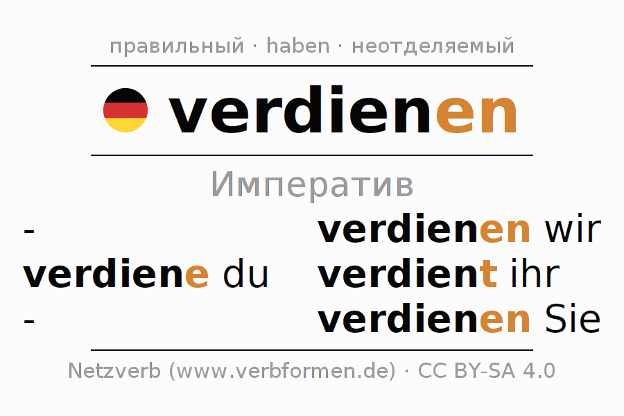 Этот глагол verdienen полностью спрягается во всех лицах и числах Императив Презенс.