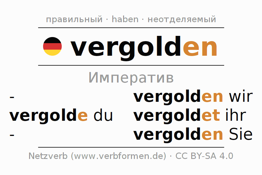Этот глагол vergolden полностью спрягается во всех лицах и числах Императив Презенс.
