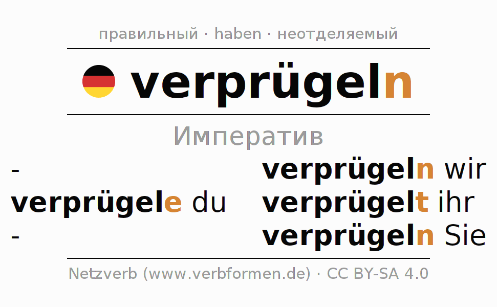 Этот глагол verprügeln полностью спрягается во всех лицах и числах Императив Презенс.