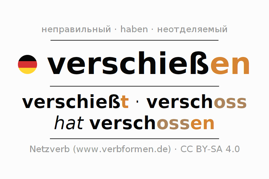 Формами спряжения verschießen (блёкнуть, бросать) в повелительном наклонении являются: verschieße (du), verschießen wir, verschießt (ihr), verschießen Sie