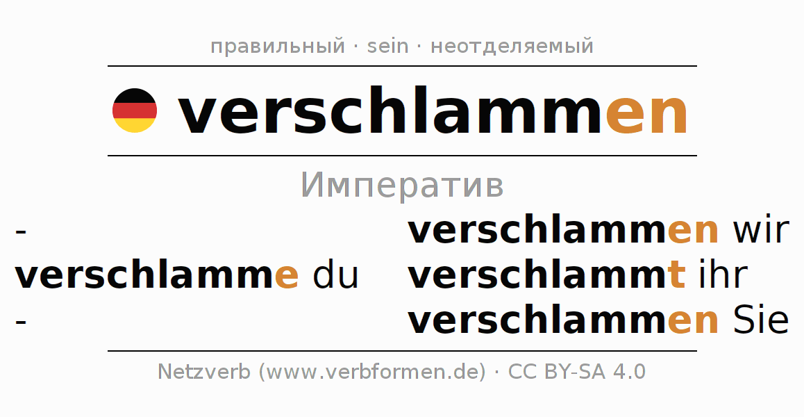 - Как спрягается verschlammen в Императив?