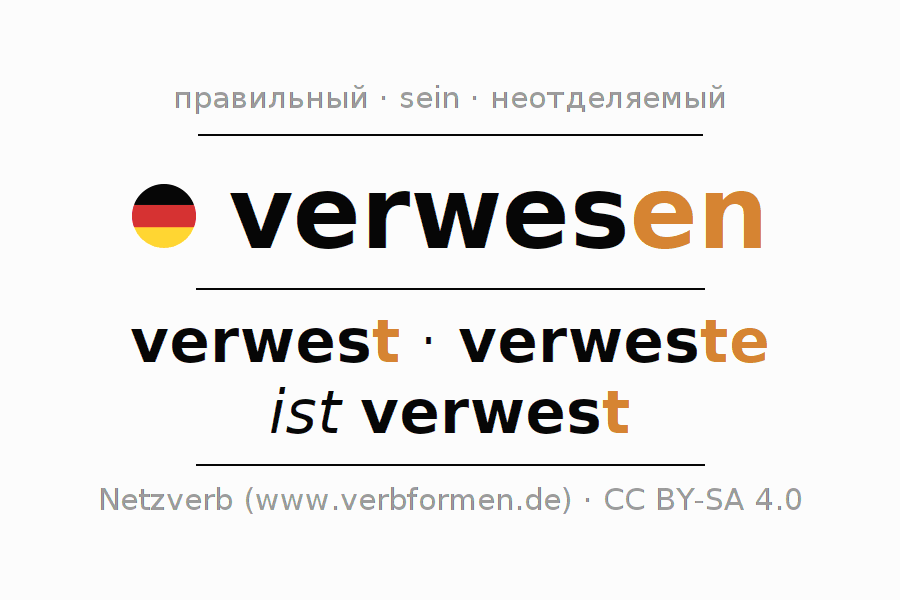 - Образование Инфинитив verwesen