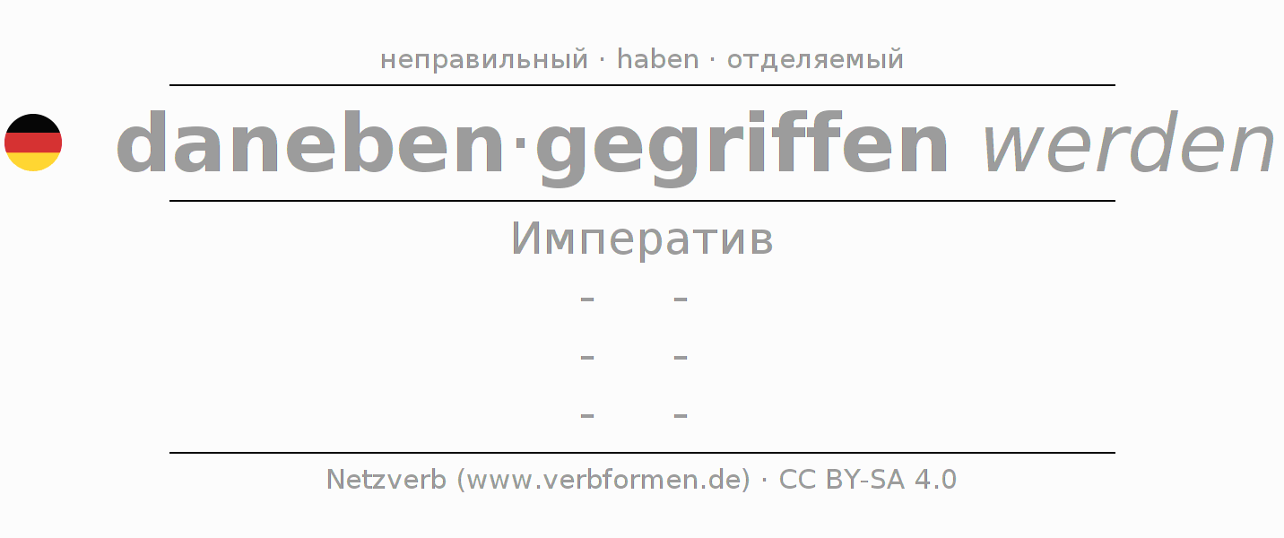 Этот глагол danebengreifen полностью спрягается во всех лицах и числах Императив Презенс.