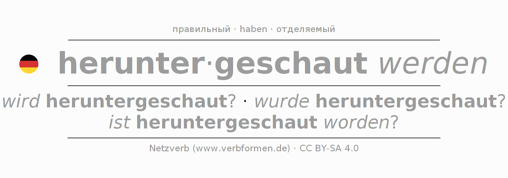 - Как спрягается herunterschauen в Партицип?