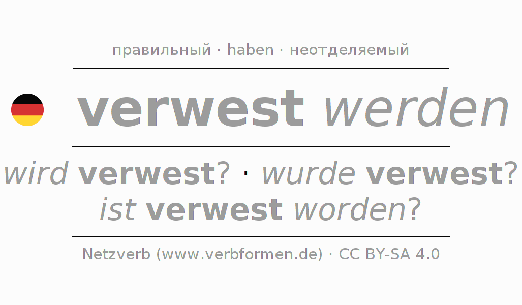- Образование Инфинитив verwesen