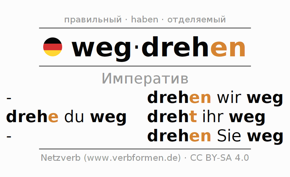 - drehe (du) weg (Второе лицоЕдинственное число)