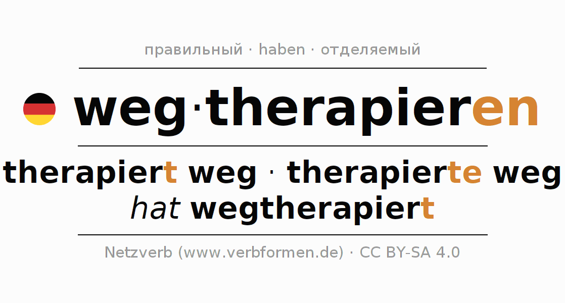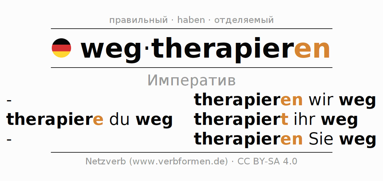 Этот глагол wegtherapieren полностью спрягается во всех лицах и числах Императив Презенс.