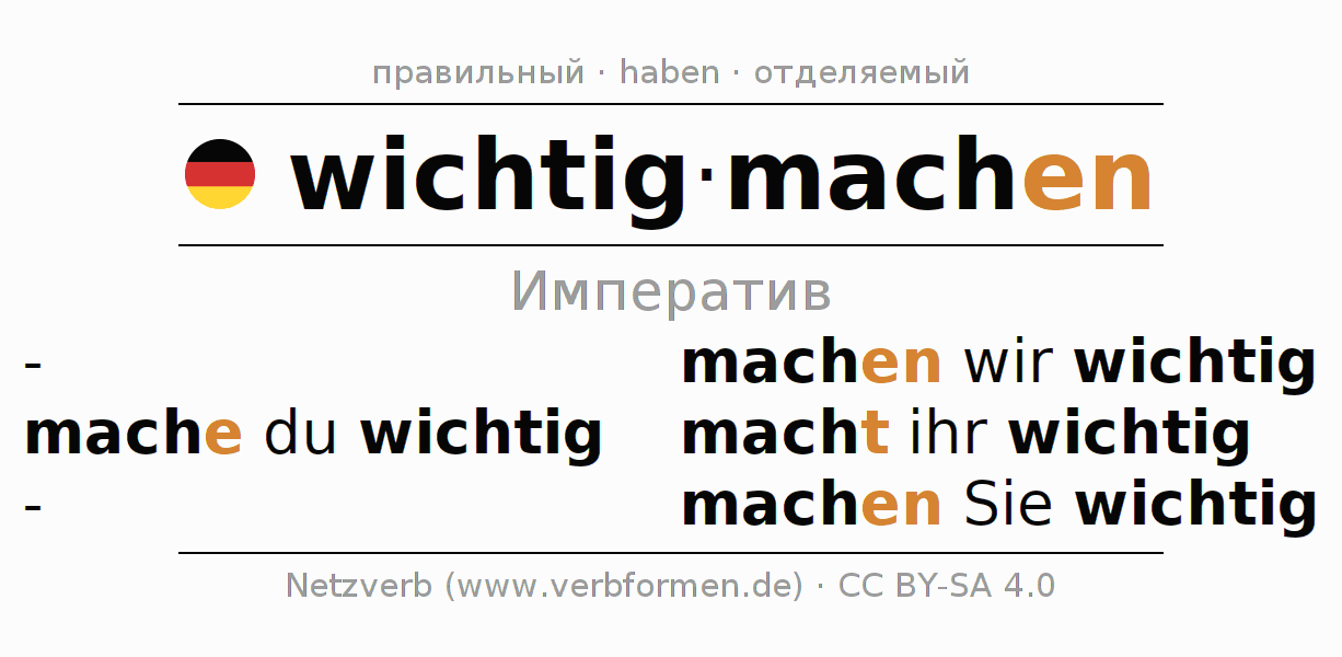 Этот глагол wichtigmachen полностью спрягается во всех лицах и числах Императив Презенс.