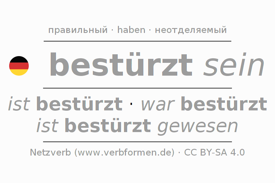 Спряжение bestürzen в Императив Презенс Повелительное наклонение Пассив с sein: sei (du) bestürzt, seien wir bestürzt, seid (ihr) bestürzt, seien Sie bestürzt.Образование этих форм происходит по определённым грамматическим правилам. Так же спрягаются простые глагольные формы bestürzen в Императив. Kомментарии ☆