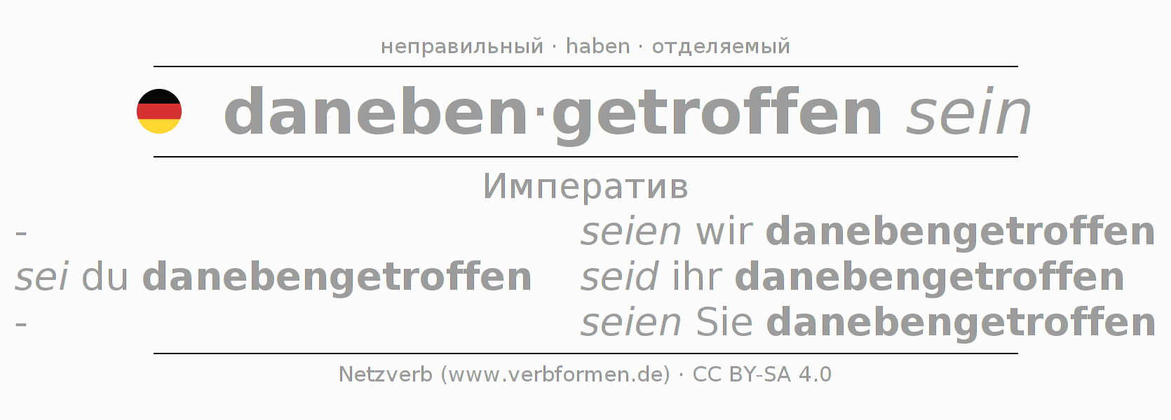 Этот глагол danebentreffen полностью спрягается во всех лицах и числах Императив Презенс.