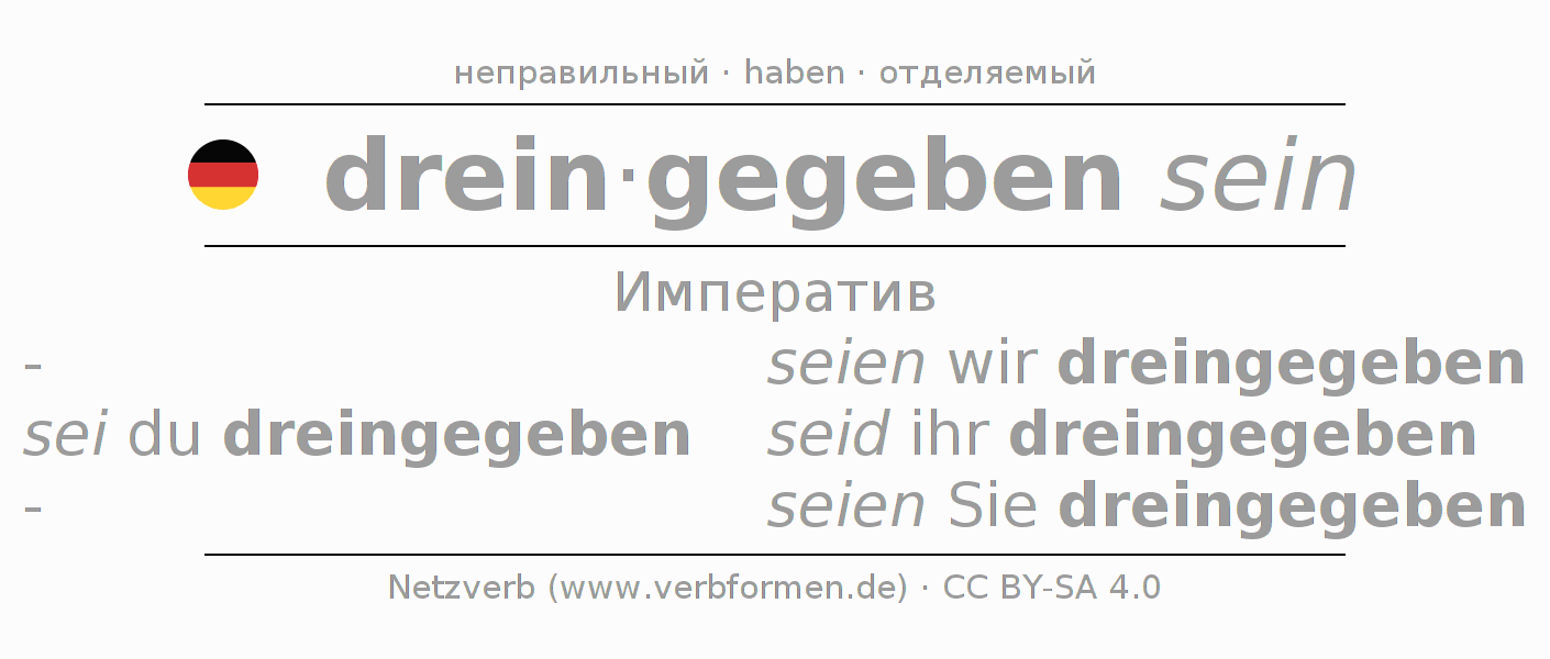 Этот глагол dreingeben полностью спрягается во всех лицах и числах Императив Презенс.