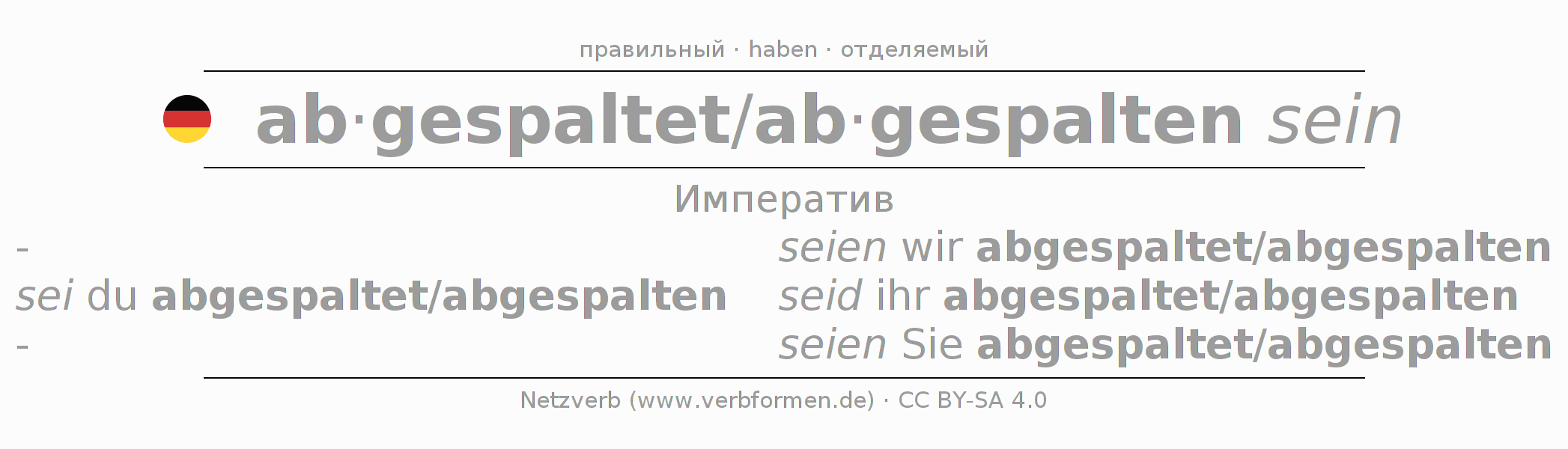Этот глагол abspalten полностью спрягается во всех лицах и числах Императив Презенс.