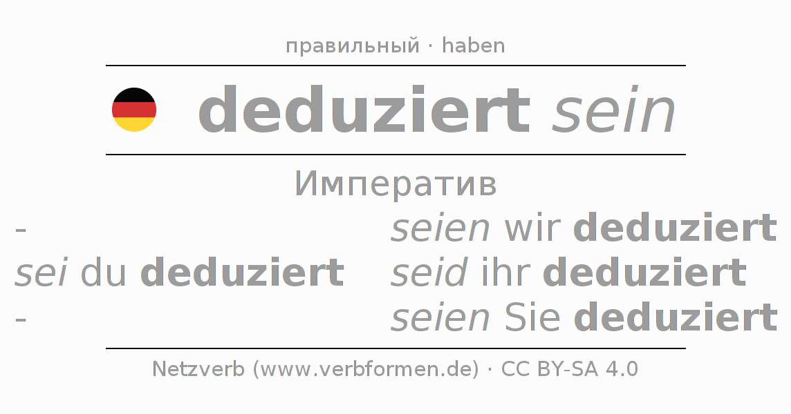 Этот глагол deduzieren полностью спрягается во всех лицах и числах Императив Презенс.