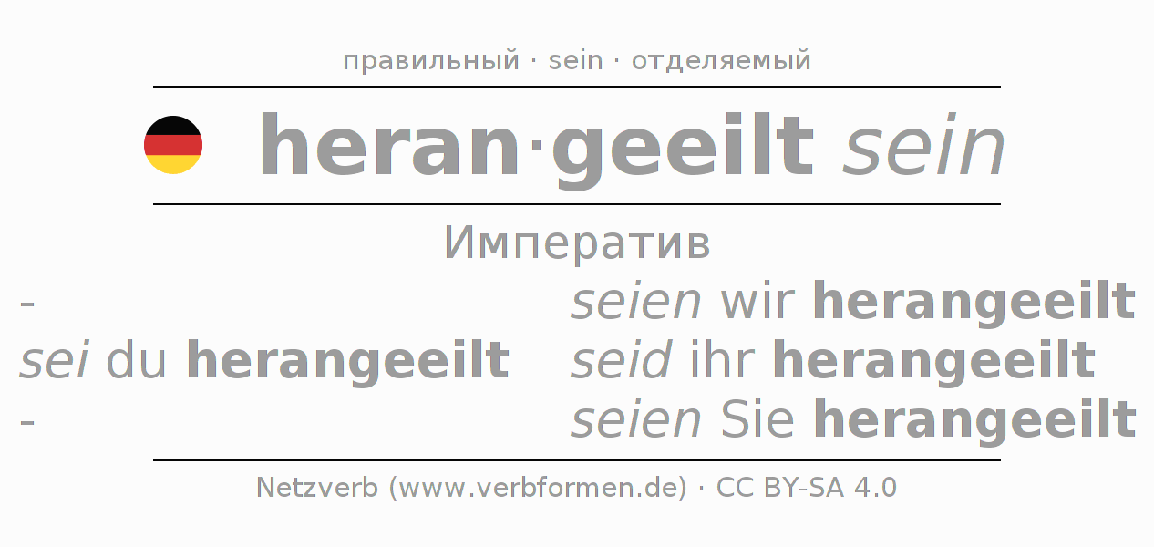 - sei (du) herangeeilt (Второе лицоЕдинственное число)