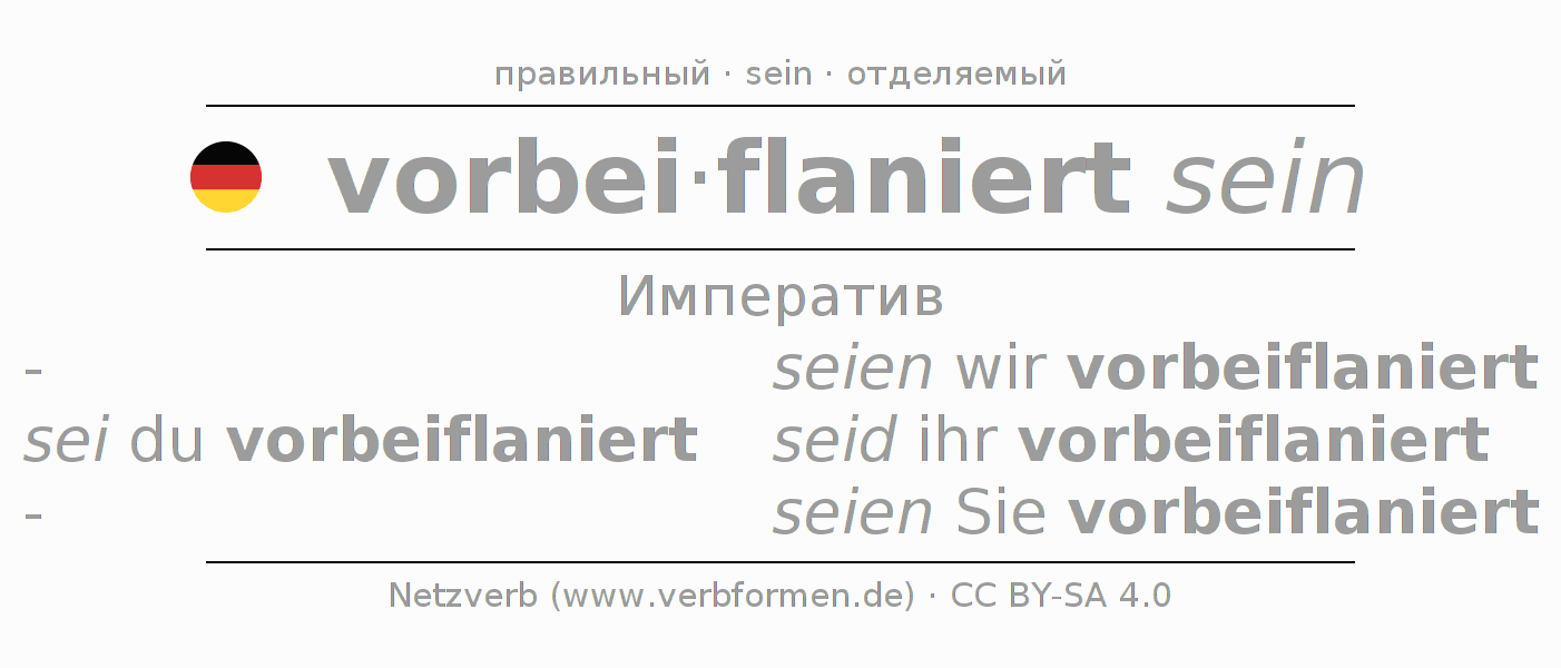 Этот глагол vorbeiflanieren полностью спрягается во всех лицах и числах Императив Презенс.