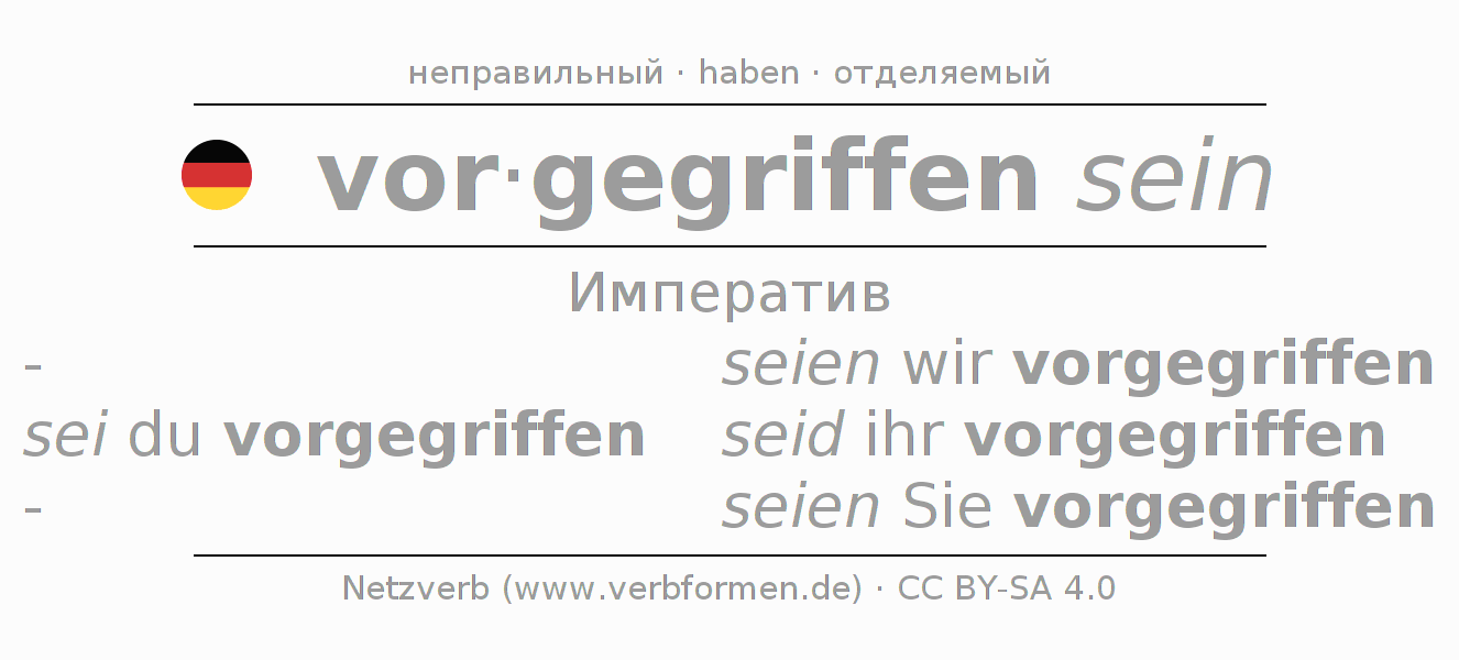 Этот глагол vorgreifen полностью спрягается во всех лицах и числах Императив Презенс.