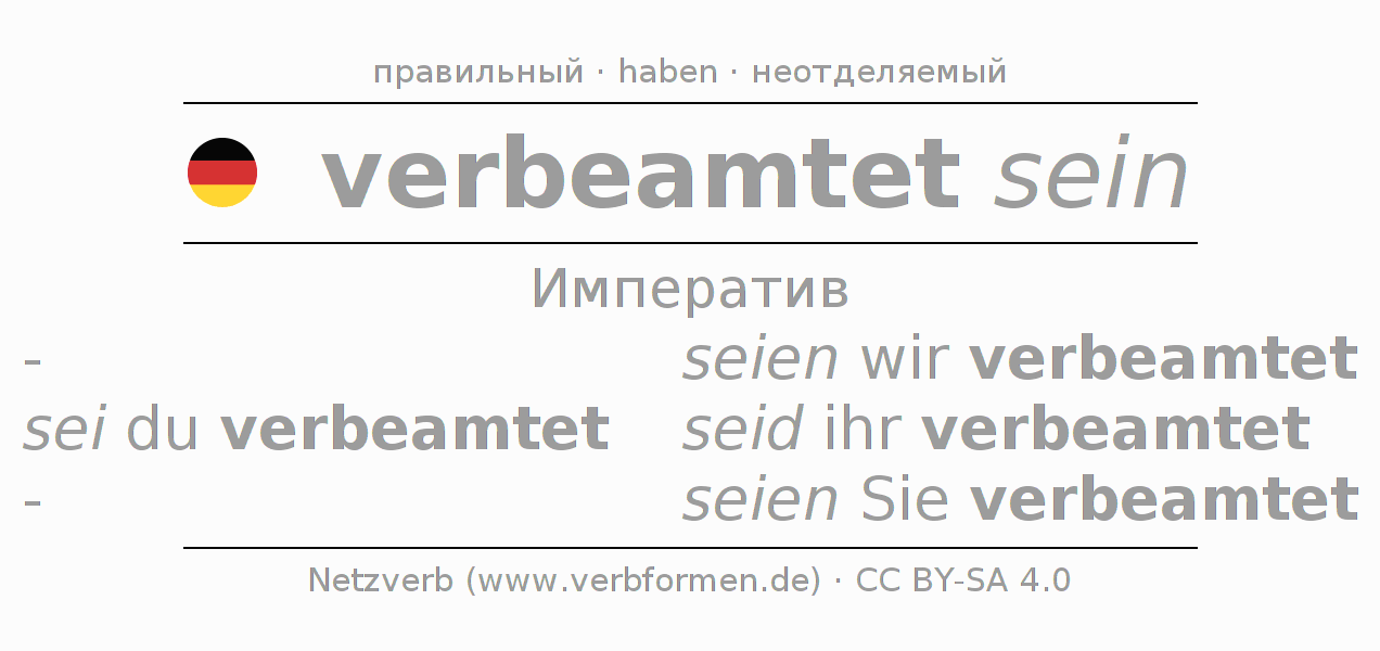 Этот глагол verbeamten полностью спрягается во всех лицах и числах Императив Презенс.