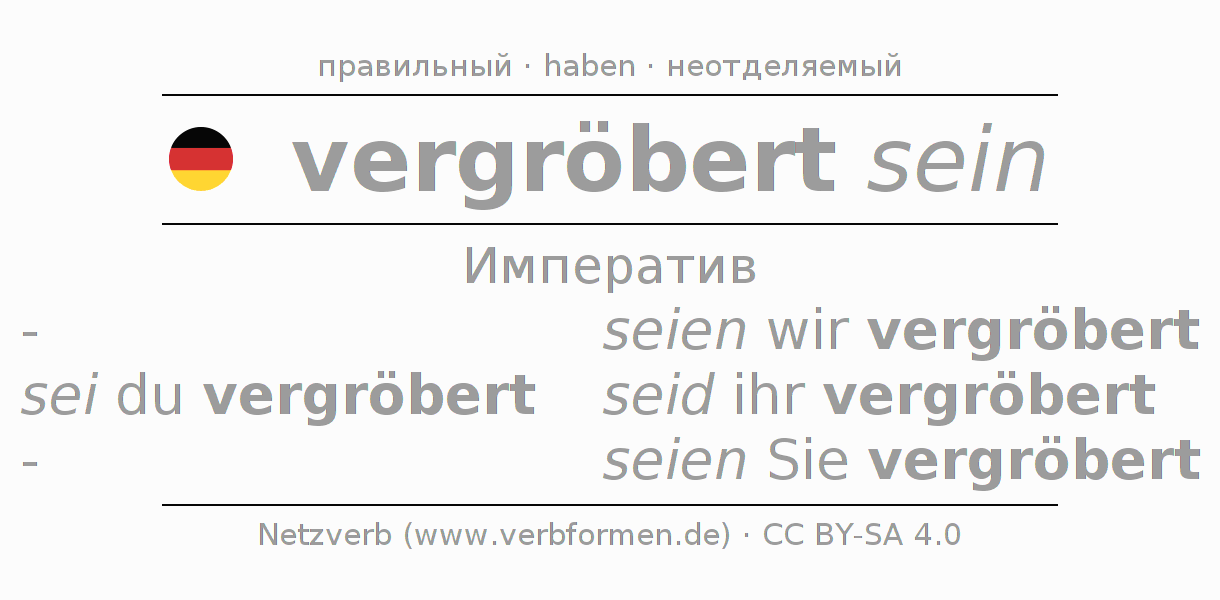 Этот глагол vergröbern полностью спрягается во всех лицах и числах Императив Презенс.