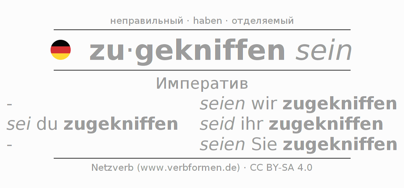 - Как спрягается zukneifen в Императив?