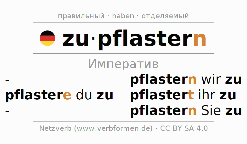 Этот глагол zupflastern полностью спрягается во всех лицах и числах Императив Презенс.