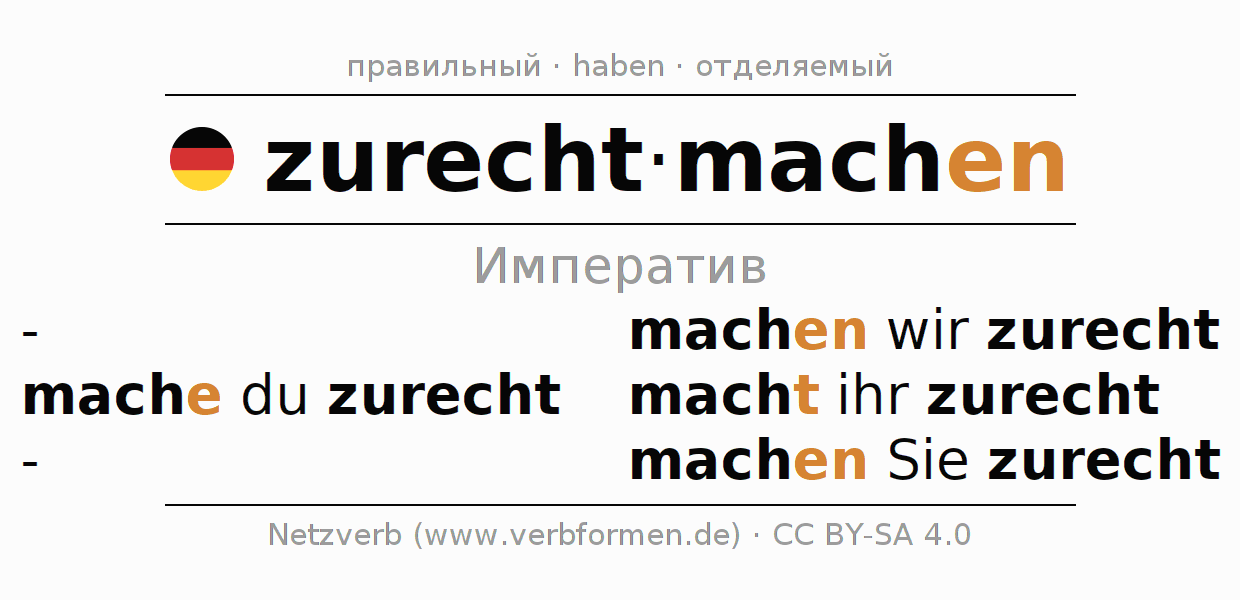 - mache (du) zurecht (Второе лицоЕдинственное число)