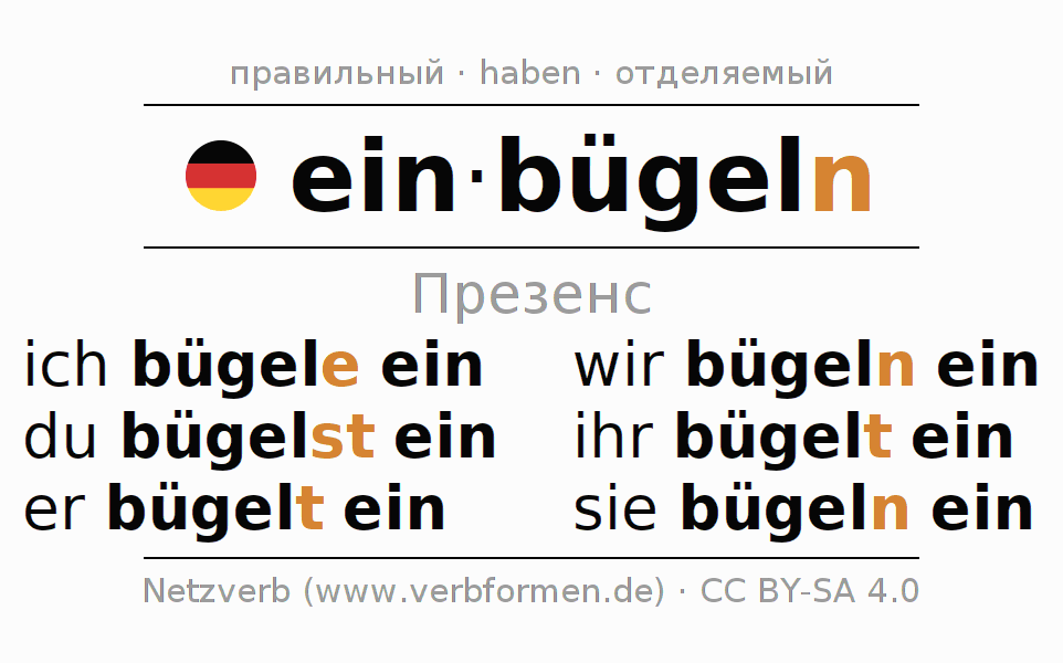 - ich büg(e)le ein (1-е лицоЕдинственное число)