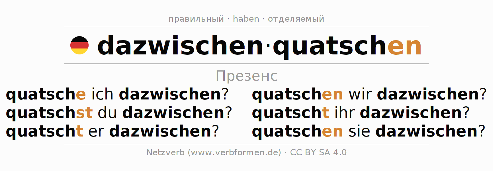 - quatsche ich dazwischen? (1-е лицоЕдинственное число)