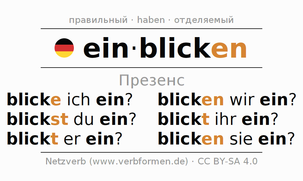 - blicke ich ein? (1-е лицоЕдинственное число)