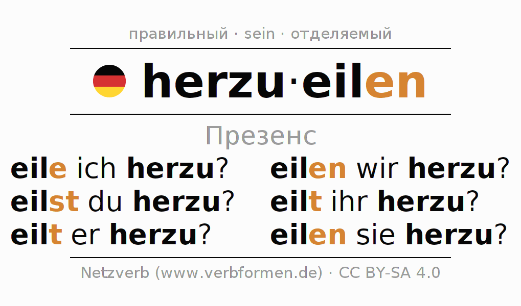 - Как спрягается herzueilen в Презенс?