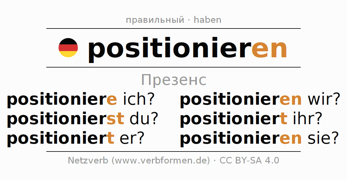 Этот глагол positionieren полностью спрягается во всех лицах и числах Презенс Индикатив.