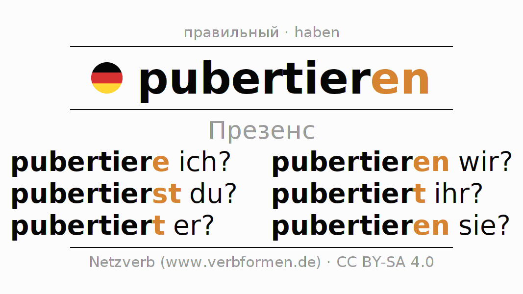 - pubertiere ich? (1-е лицоЕдинственное число)