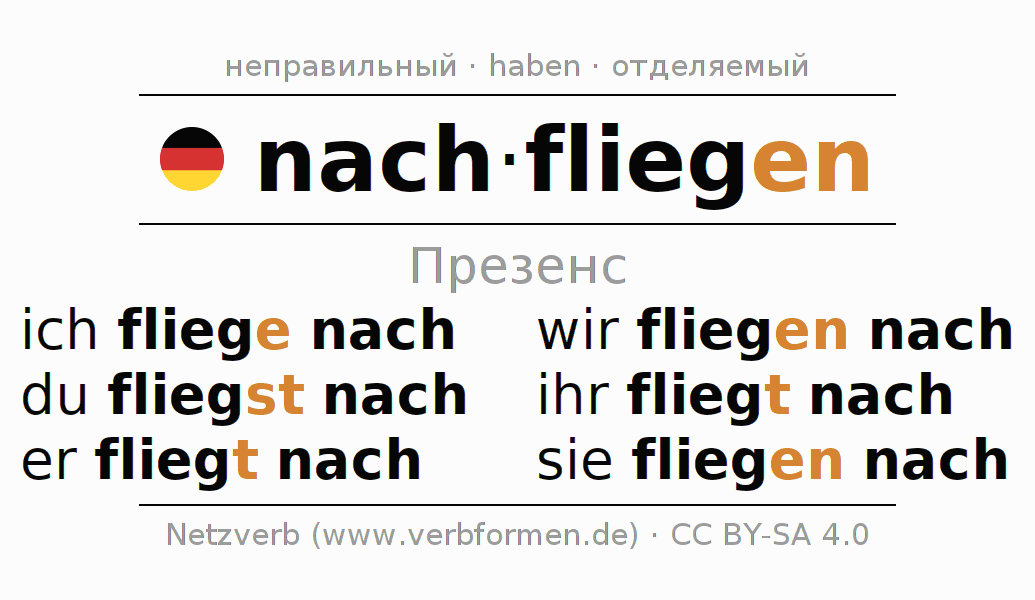 - Как спрягается nachfliegen в Презенс?