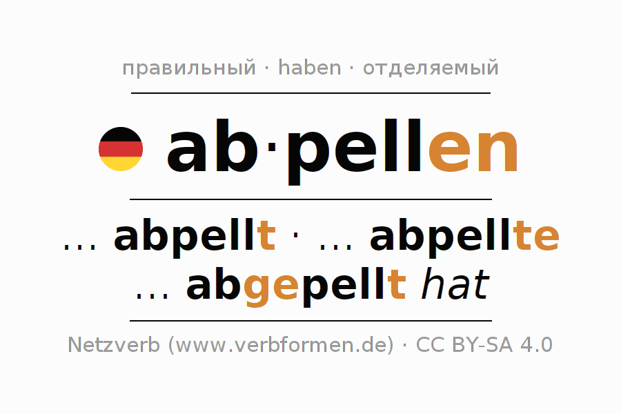 Этот глагол abpellen полностью спрягается во всех лицах и числах Презенс Индикатив.